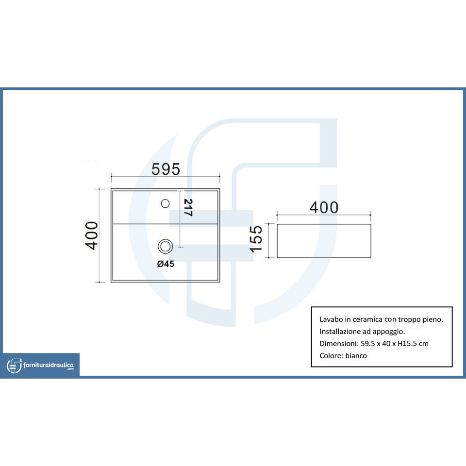 La52 Countertop Washbasin 59.5x40cm Modern & Rustic Bathroom Sink Porcelain Marble & Stone Material for Hotels
