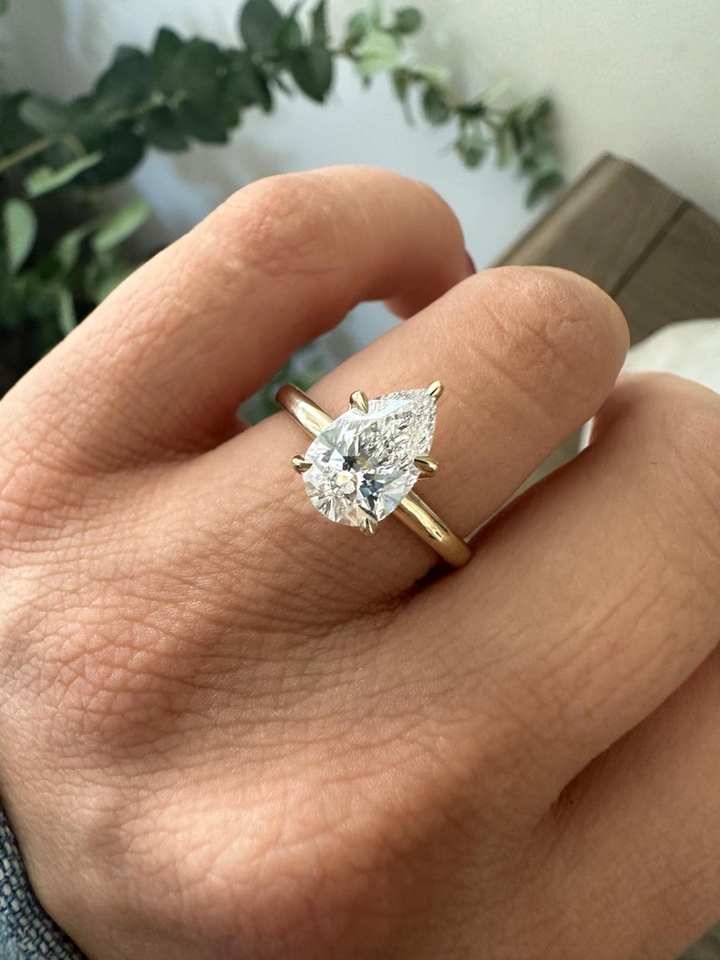 Diamante coltivato in laboratorio 14K oro solido giallo taglio pera diamante solitario anello di fidanzamento 1 carato