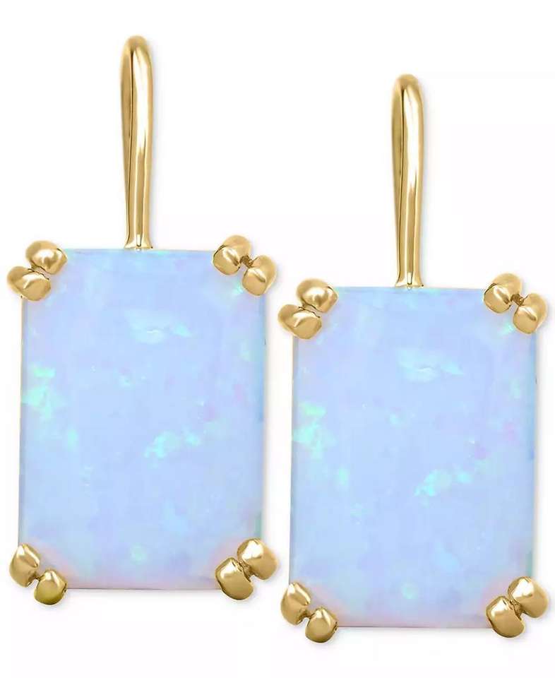 Orecchini a cerchio con Leverback opale coltivati in laboratorio (9 ct. T. w.) in argento Sterling placcato oro 14k | Macacy's