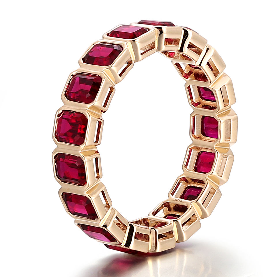 Lab Grown Ruby Eternity Band Rings 3*5mm Emerald Cut Lab Grown Ruby with 10k Yellow Gold Ring Perfect Anniversary Gift for Her