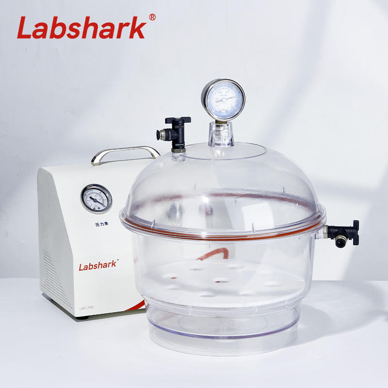 Attrezzatura da Laboratorio: Contenitore Trasparente in Plastica per Essiccazione Sottovuoto, Esiccatore con Pompa a Vuoto per Uso Laboratorio