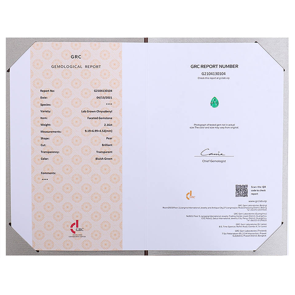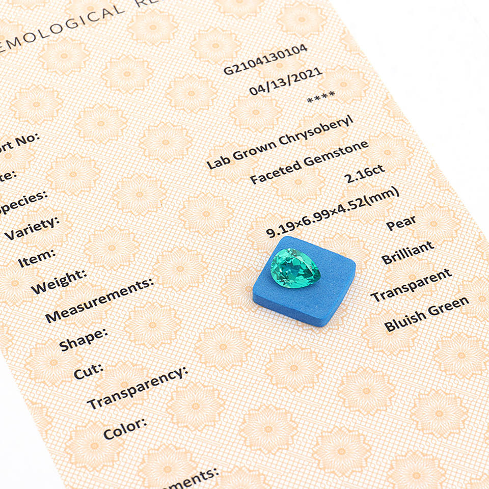 Nome del prodotto:Gemma Coltivata in Laboratorio Verde Bluastro