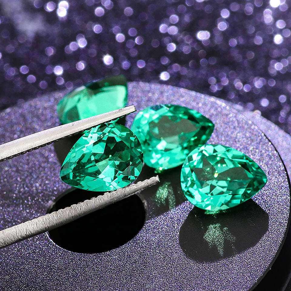 Gemma Sintetica da Laboratorio Verde Bluastro 2.16 Carati Taglio a Pera Gemma Sciolta Acquista Gemme Online