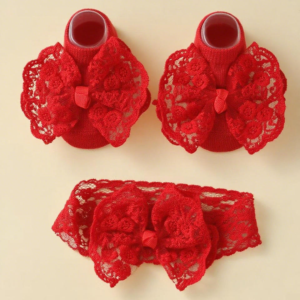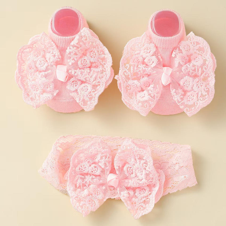 Nome del prodotto:Calzini con Fiocco in Pizzo & Fascia per Capelli con Fiocco