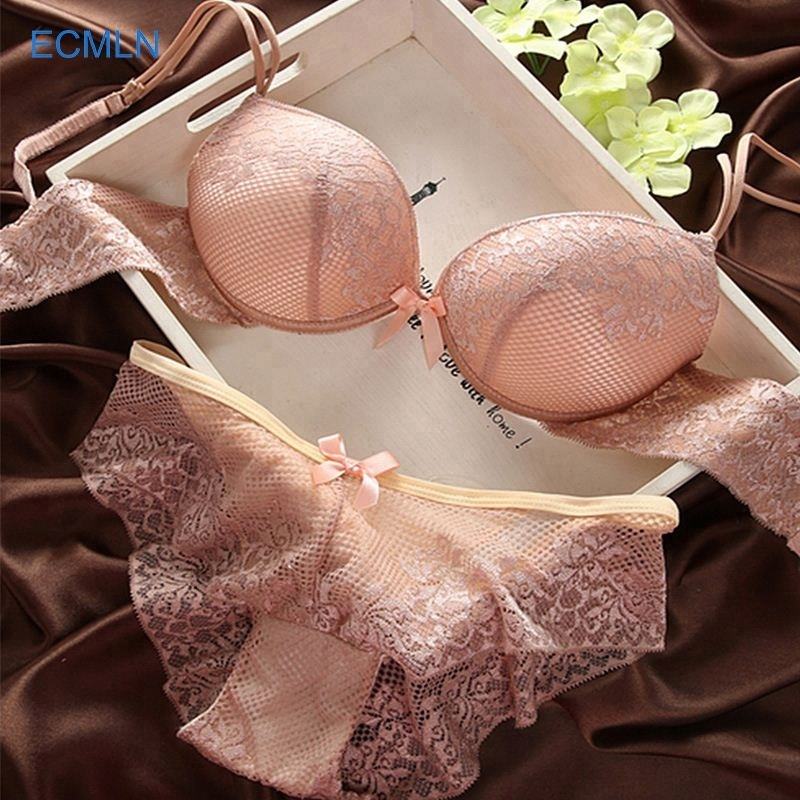 Lace Bra Panties Sets Lovely Girls Cute Japanese Underwire Push up Lace Embroidered Bra and Brief Sets for Women