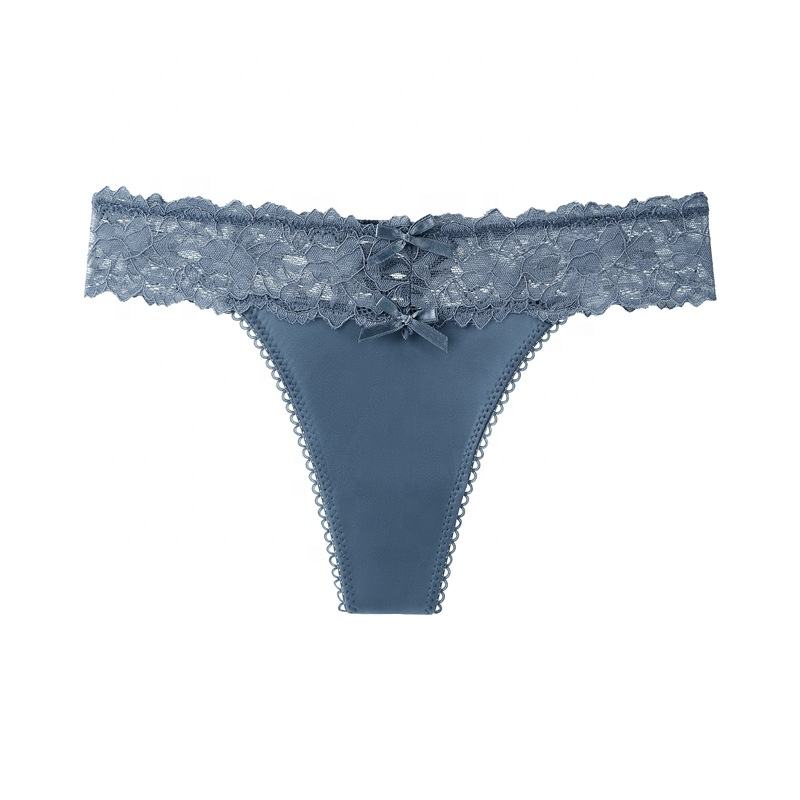 Lace Cross Bow Low Waist Hollow Ice Silk Buttock Lifting Thong Without Trace Breathable