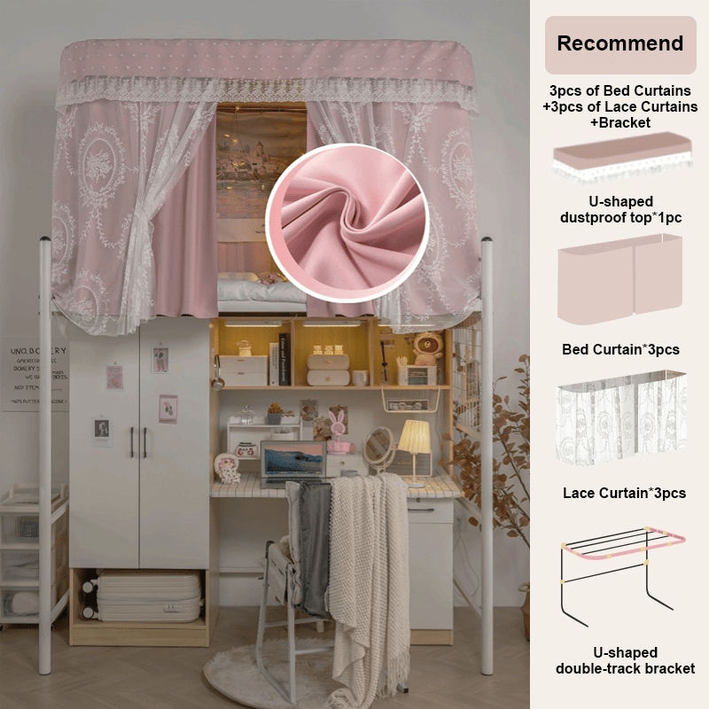 Lace Embroidery Bed Curtains for Room Student Dormitory, Canopy Sheer Curtain for Bunk Bed