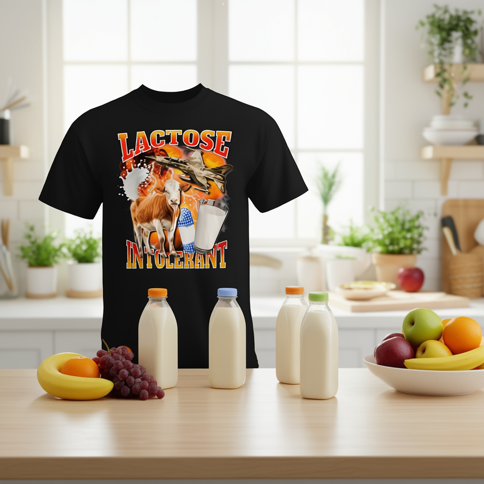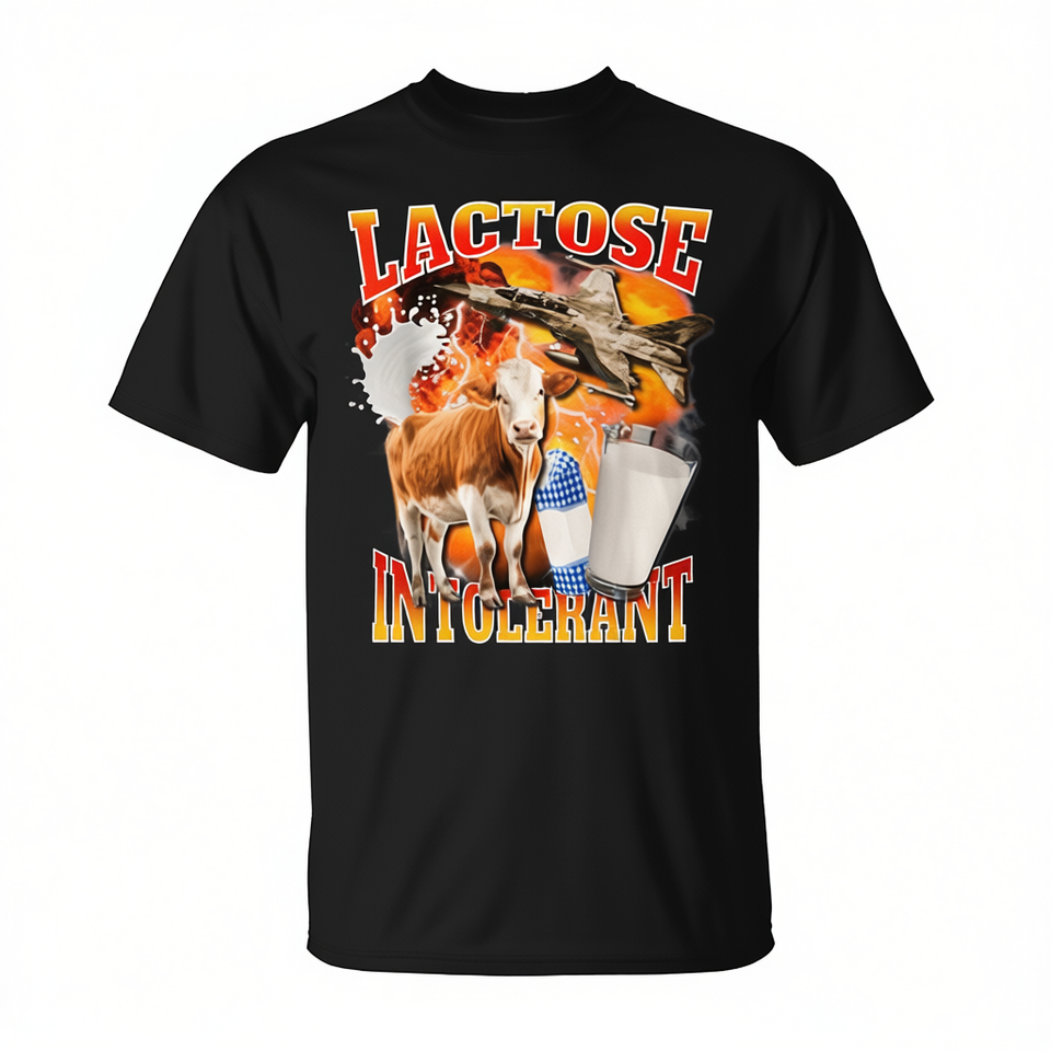 T-shirt con meme per l'intolleranza al lattosio, unisex, girocollo, manica corta, taglia dalla S alla 3XL, regalo divertente per uno stile di vita senza latticini