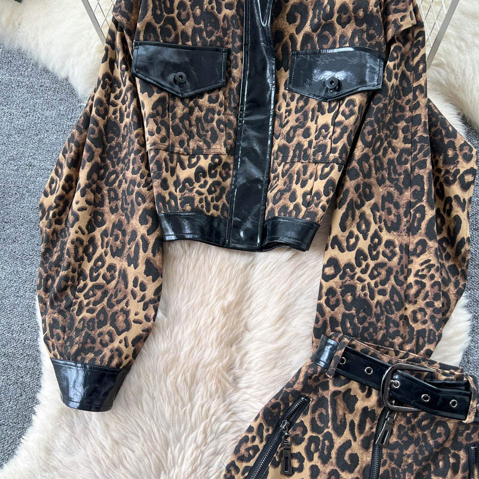 Completo da Donna 2 Pezzi: Top Corto in Pelle Chic e Pantaloni con Stampa Leopardata, Elegante Completo Sportivo Due Pezzi