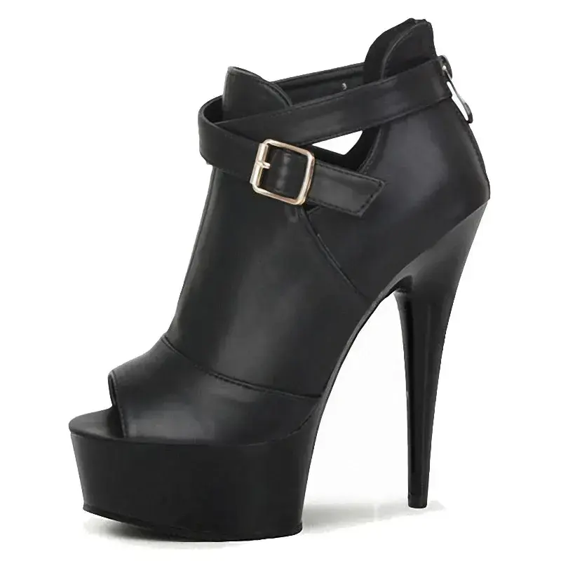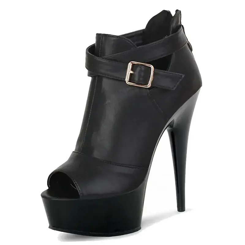 Stivali da Donna con Plateau alla Caviglia, Tacco 8cm, Punta Aperta, Stile Coreano, Traspiranti in PU, con Fibbia Metallica, Slip-On, Autunno Inverno