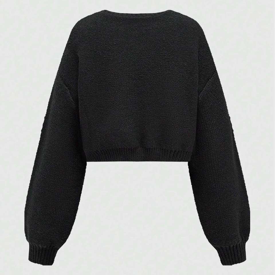 Cardigan in Maglia da Donna Autunno Inverno con Ricamo, Motivo Sole Luna, Maniche a Lanterna, Scollo a V