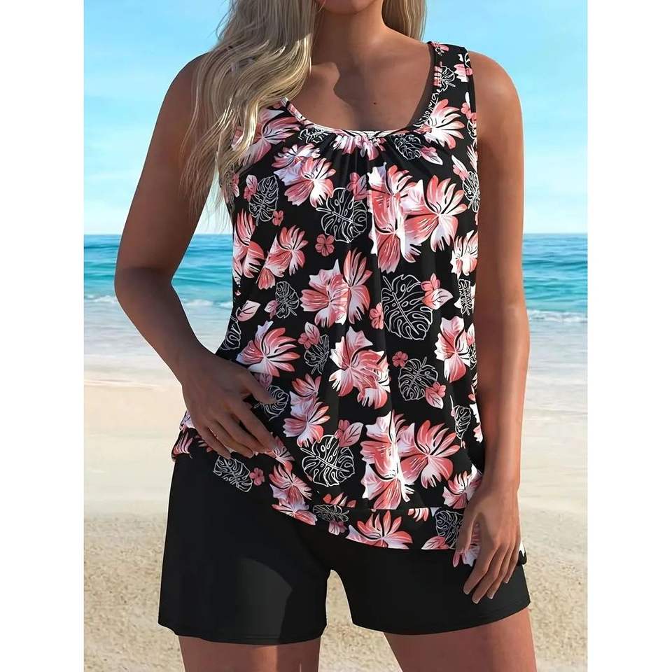 Costume da bagno tankini due pezzi casual da donna taglie forti, abbigliamento da spiaggia, bikini