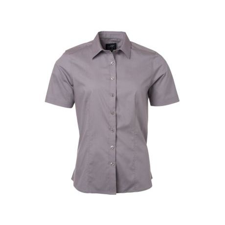 Ladies' Classic Short Sleeve Poplin Shirt Loose-Fitting Easy-Care Blended Fabric for Office or Party-XL Size