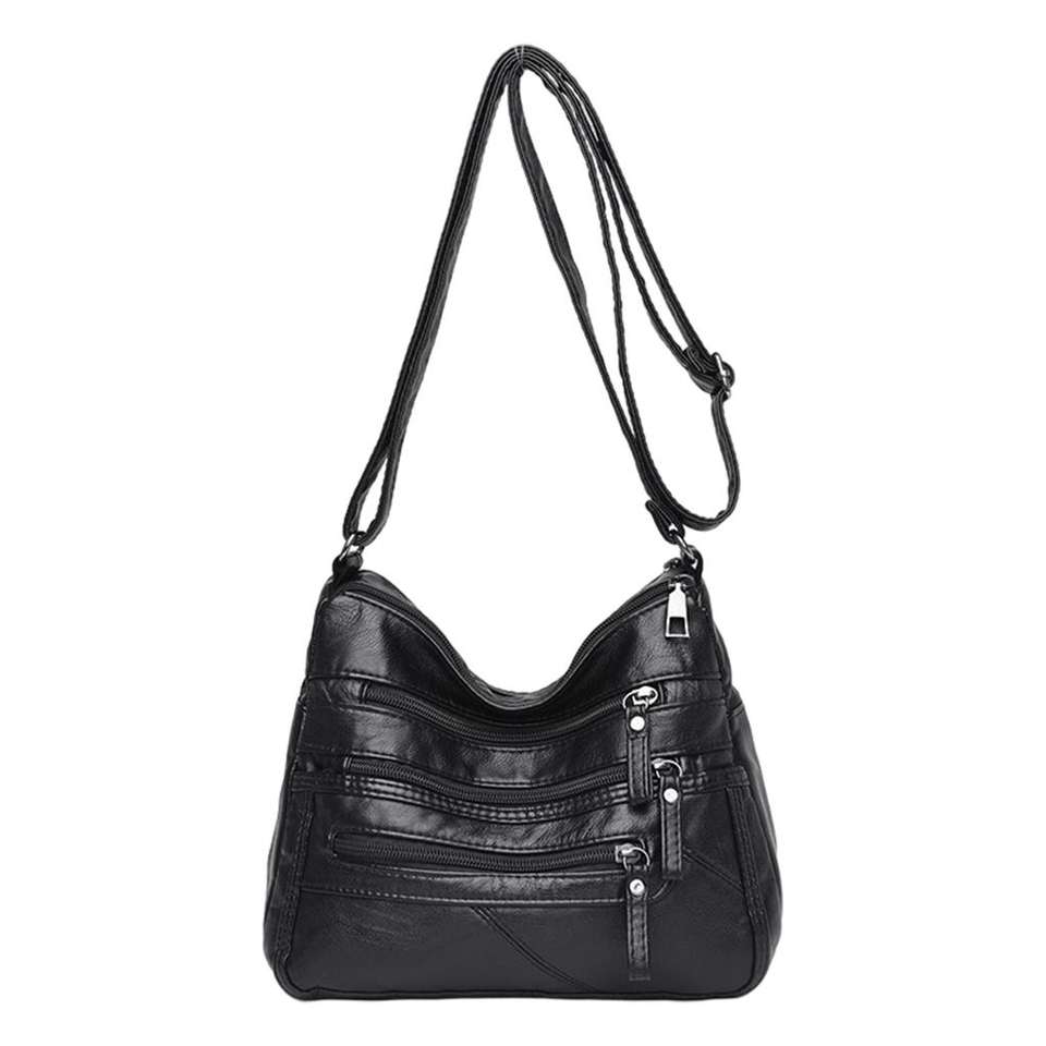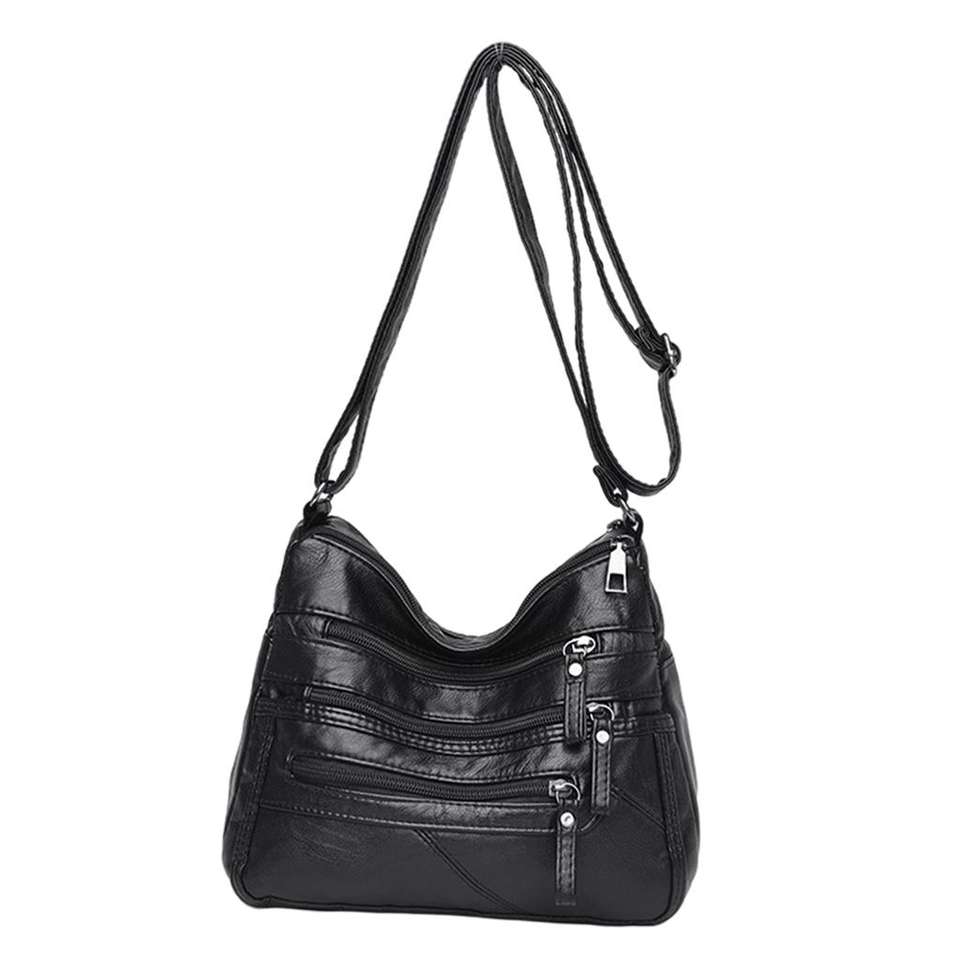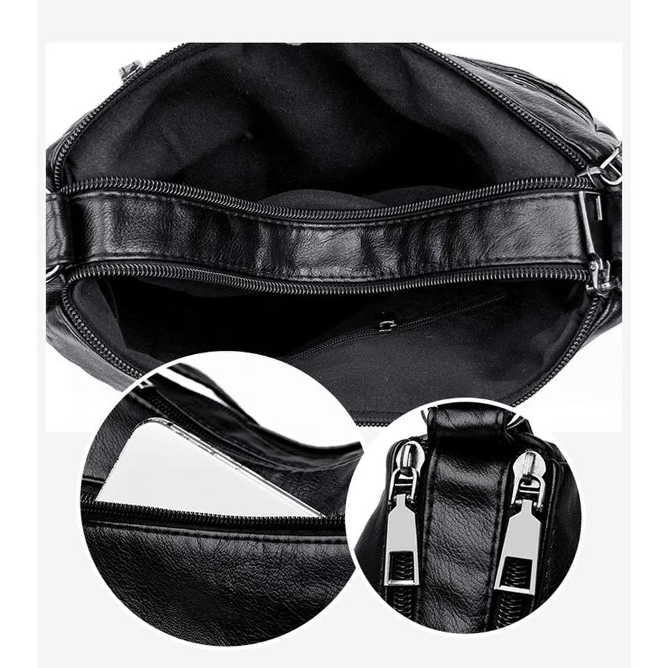 Ladies Cross Body Large Shoulder Handbag Long Strap Black Water Proof Messenger Bag Genuine Leather Polyester Lining Two