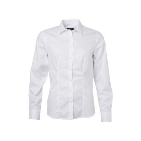 Ladies' Herringbone Longsleeve Shirt Easy-Care Blended Silk Fabric Stand Collar Embroidered Logo Office Wear-Size XL