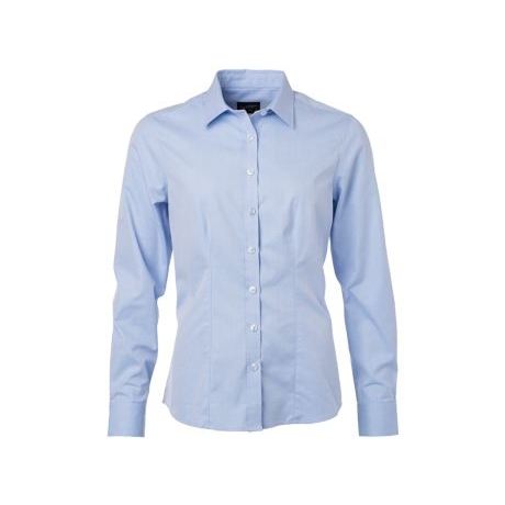 Ladies' Long Sleeve Herringbone Silk Shirt Embroidered Logo Stand Collar Loose Fit XL Size Easy-Care Blended for Office Wear