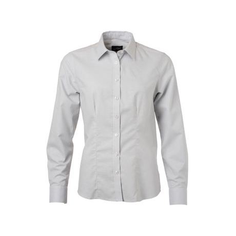 Camicia da donna a maniche lunghe in popeline - Camicia classica in tessuto misto facile da curare
