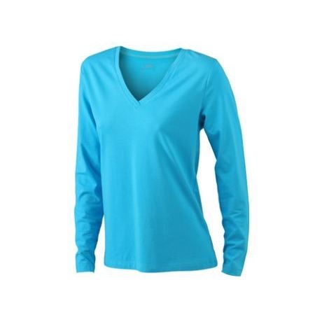 T-shirt V Stretch da Donna a Maniche Lunghe - Maglietta a Maniche Lunghe in Jersey Elasticizzato Morbido