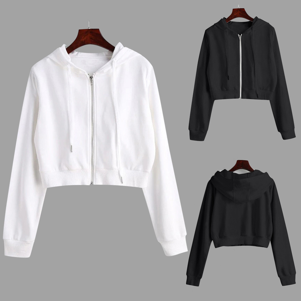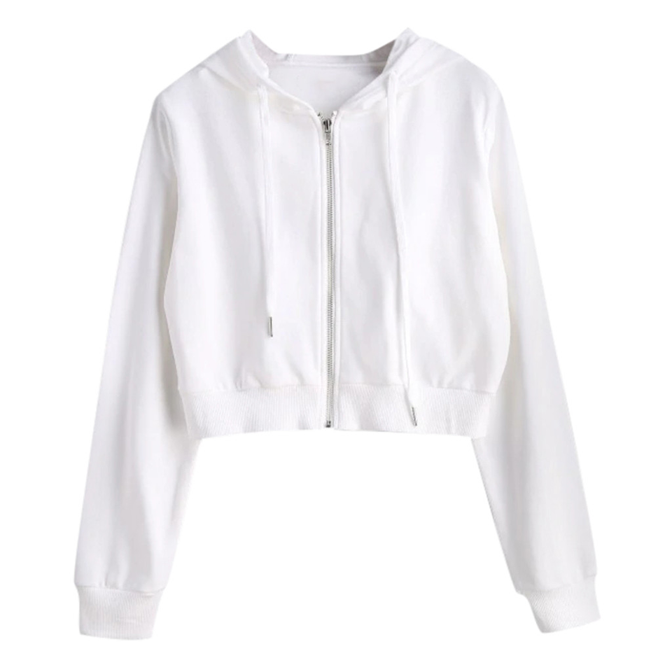 Ladies OEM Wholesale Plain Cropped Top Women's White Color Fashion style Hoodie