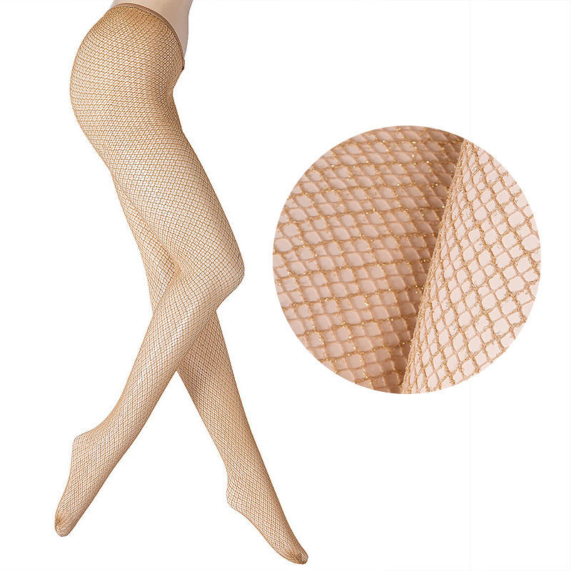 Collant da donna lucidi a forma di V con filo dorato calze Sexy Glitter collant lucide da donna carnevale Medias