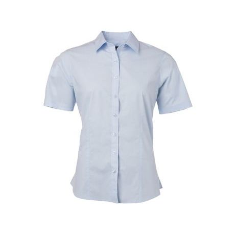 Camicia da Donna a Maniche Corte in Popeline - Camicia classica in tessuto misto facile da curare