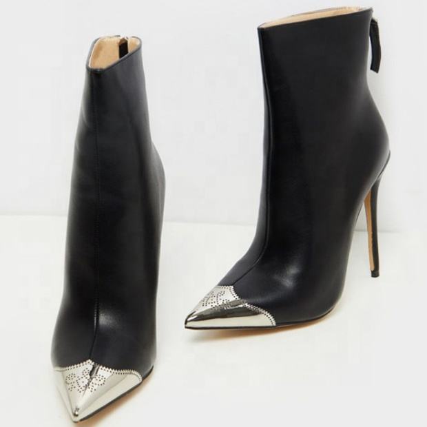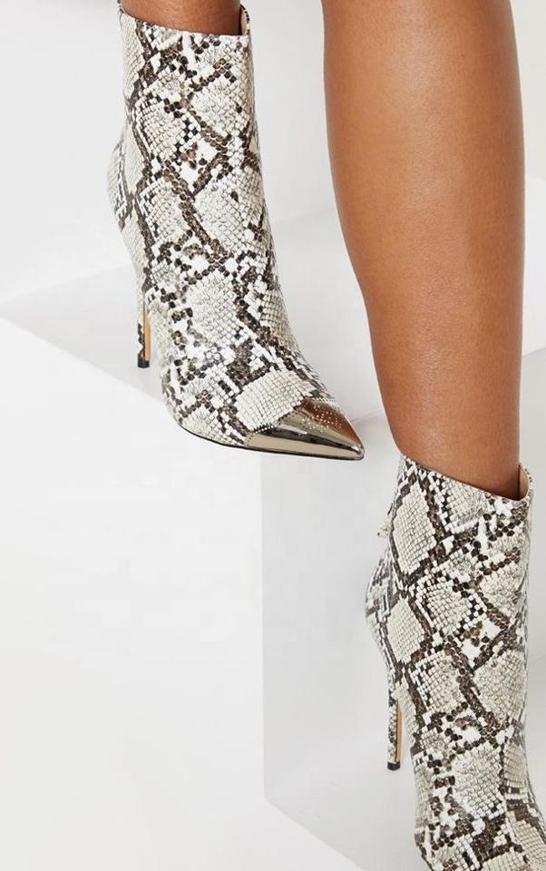 Ladies Snakeskin Thin High Heel Booties Pointed Metal Toe Stiletto Short Ankle Boots for Women Winter Pumps Shoes