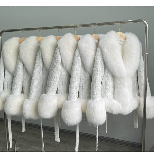 Ladies Woolen Blends Coat with Huge Fox Fur Collar and Cuffs