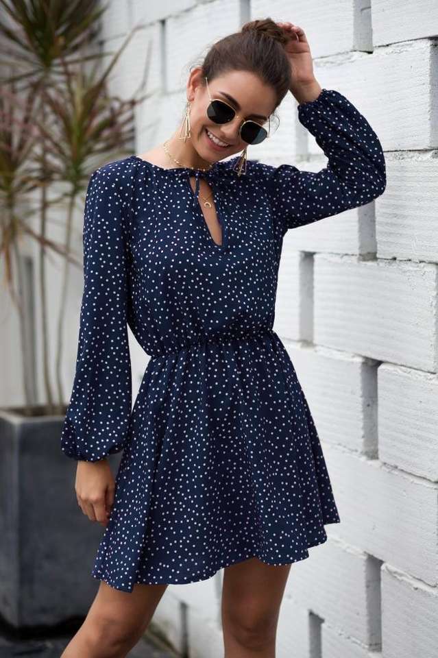 Della signora di modo di puntini di Polka di disegno maniche lunghe di nuovo disegno abiti OC18