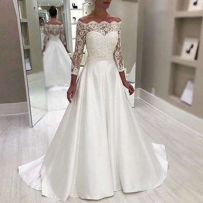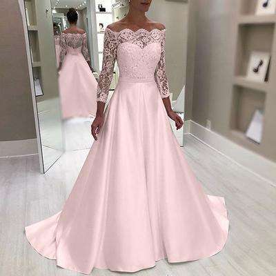 Lady Off Shoulder Lace Sleeve Bridesmaid Wedding Maxi Dress Floor Length Princess Evening Porm Dress