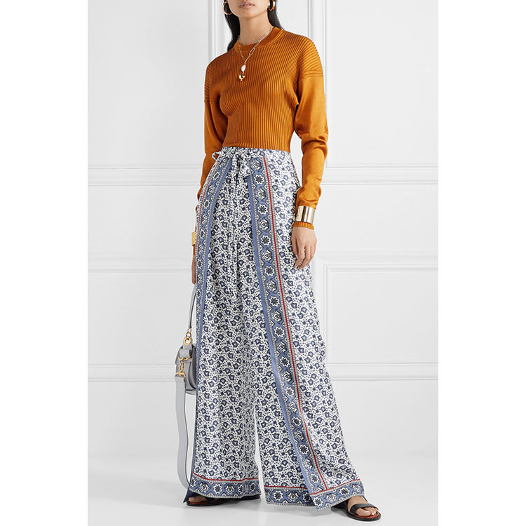 Della signora stampato svasato pantaloni vento nazionale dei pantaloni allentati donne casuali pantaloni larghi del piedino dei pantaloni