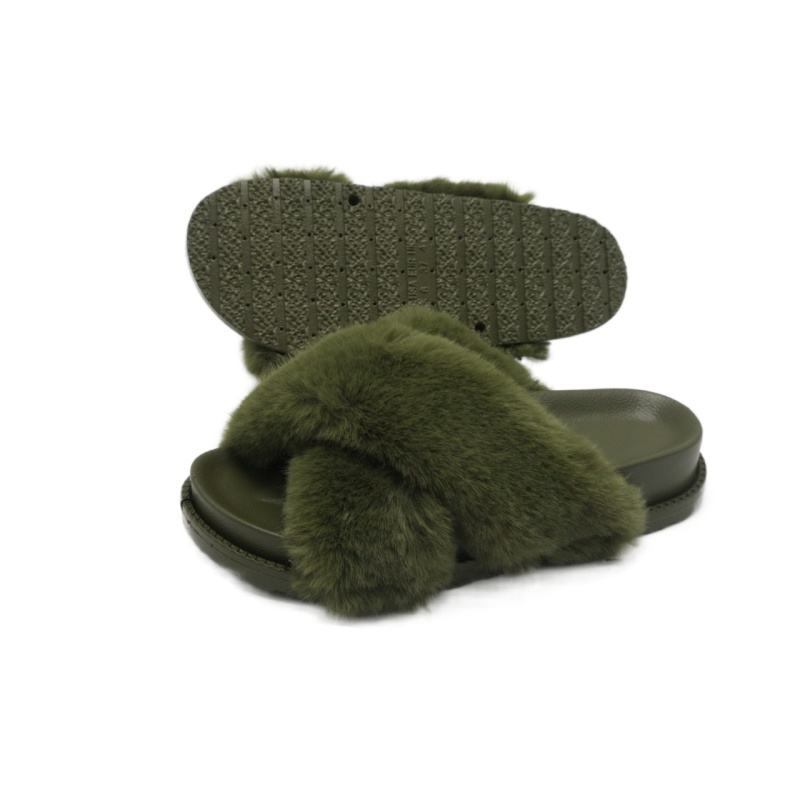 Della signora di inverno della pelliccia del faux croce superiore scivolo sandalo con il supporto all'arco plantare e tacco anatomico coppettazione suola personalizzato caldo pantofole a casa