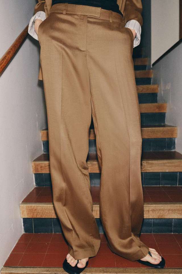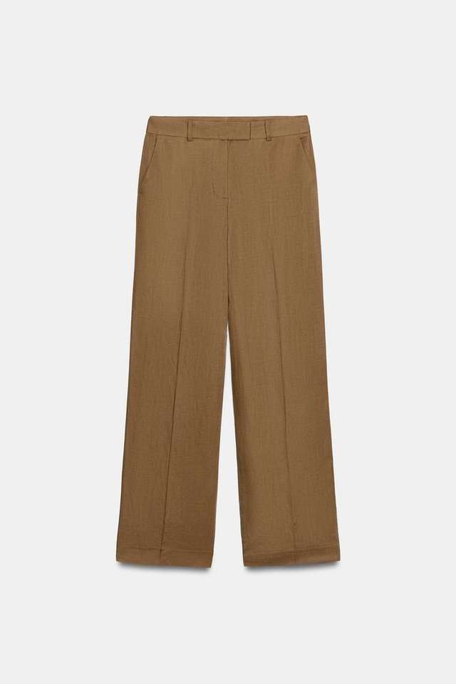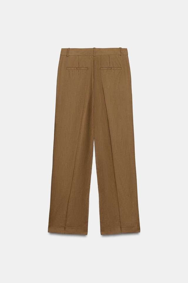 Pantaloni da Donna a Vita Alta, Larghi, Formali, da Ufficio, in Misto Lino, Gamba Larga, Comodi, Stile Business Casual