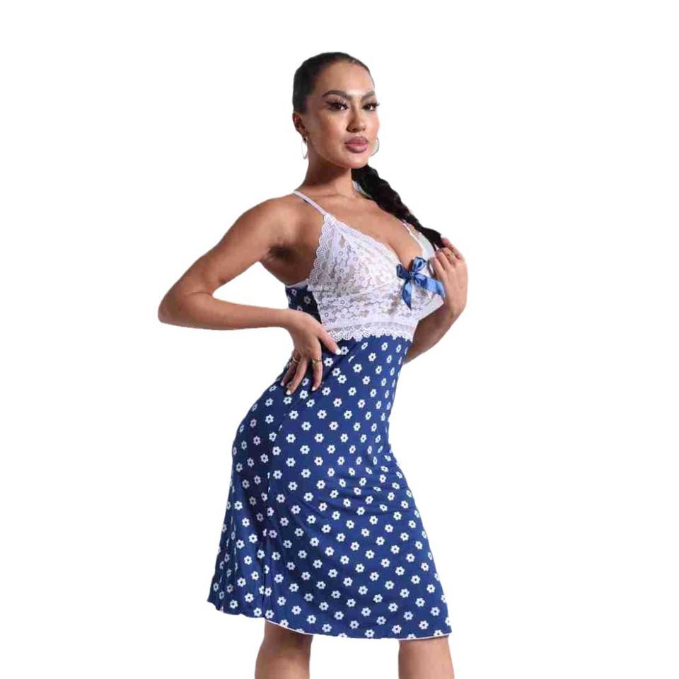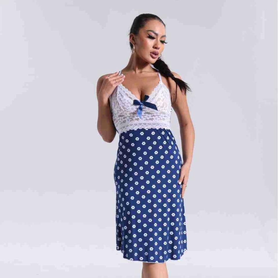 Camicia da notte da donna Sexy bordata di pizzo in tinta unita lavorata a maglia con ginocchio corto morbido e comodo abbigliamento da notte per ODM invernale fornito