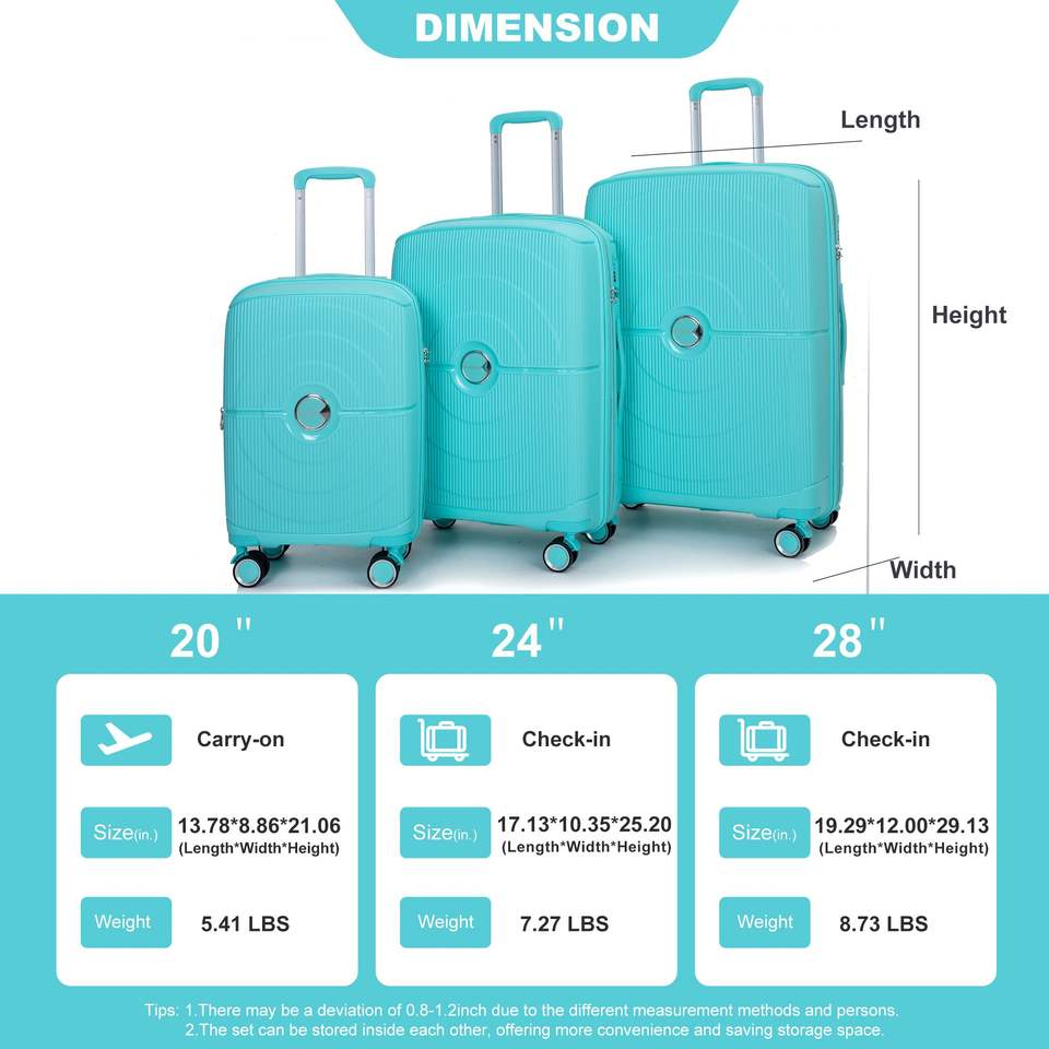 Valigia rigida espandibile blu lago con ruote a doppia Spinner Set 3 pezzi (20/24/28)-lucchetto per bagaglio leggero e resistente