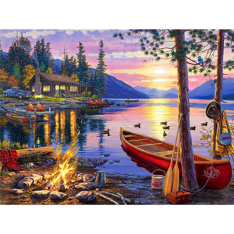 Lake Landscape Diy 5D Diamond Painting Boat Duck Full Drill 5D Diamond Art Painting Embroidery Gift Room Decor