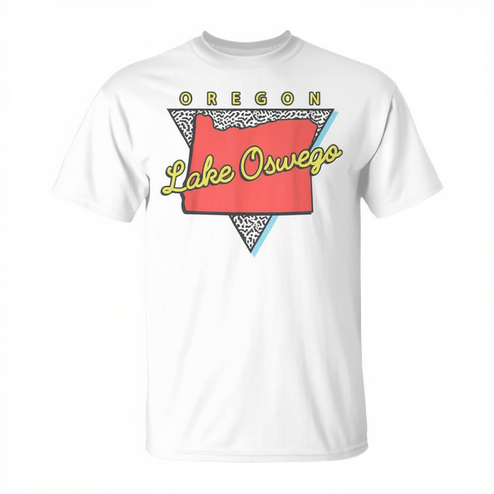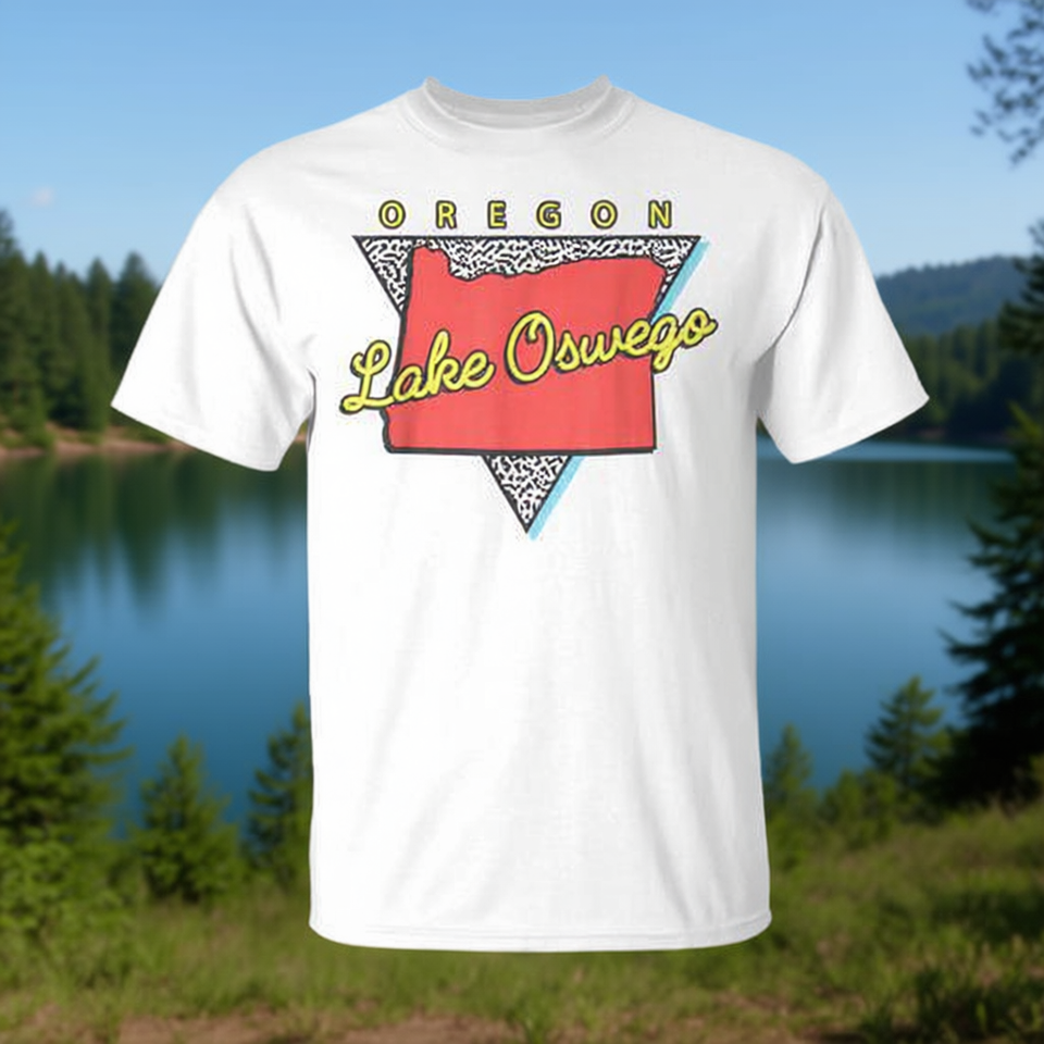 T-shirt retrò con triangolo Lake Oswego Oregon, design urbano, vestibilità unisex per adulti