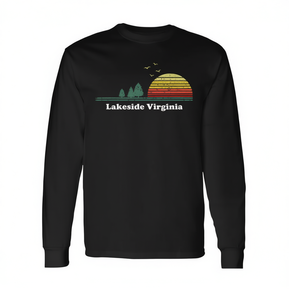 T-shirt a maniche lunghe con stampa souvenir Lakeside Virginia Sunset