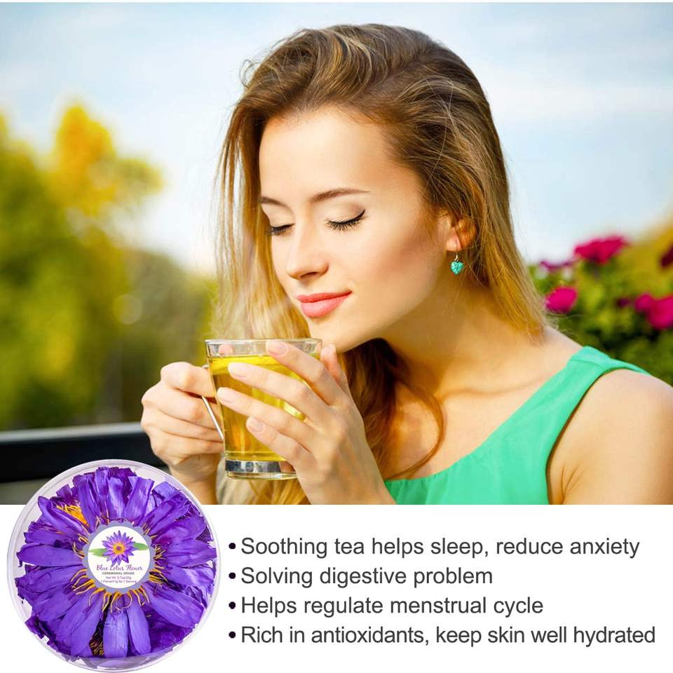 Lan Lian Hua Natural Herbal Egyptian Relaxing Dried Blue Lotus Flower Tea