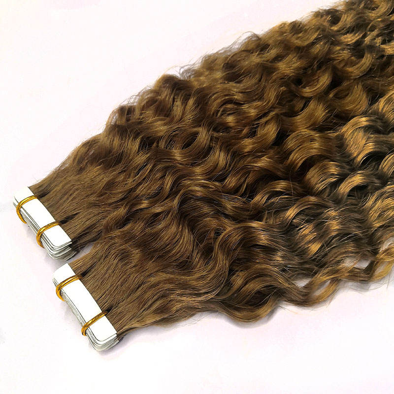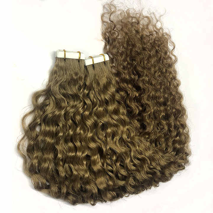 LanXun Factory Virgin Remy Russian Tape Ins Hair Extensions Raw Wavy Curly Tape Ins