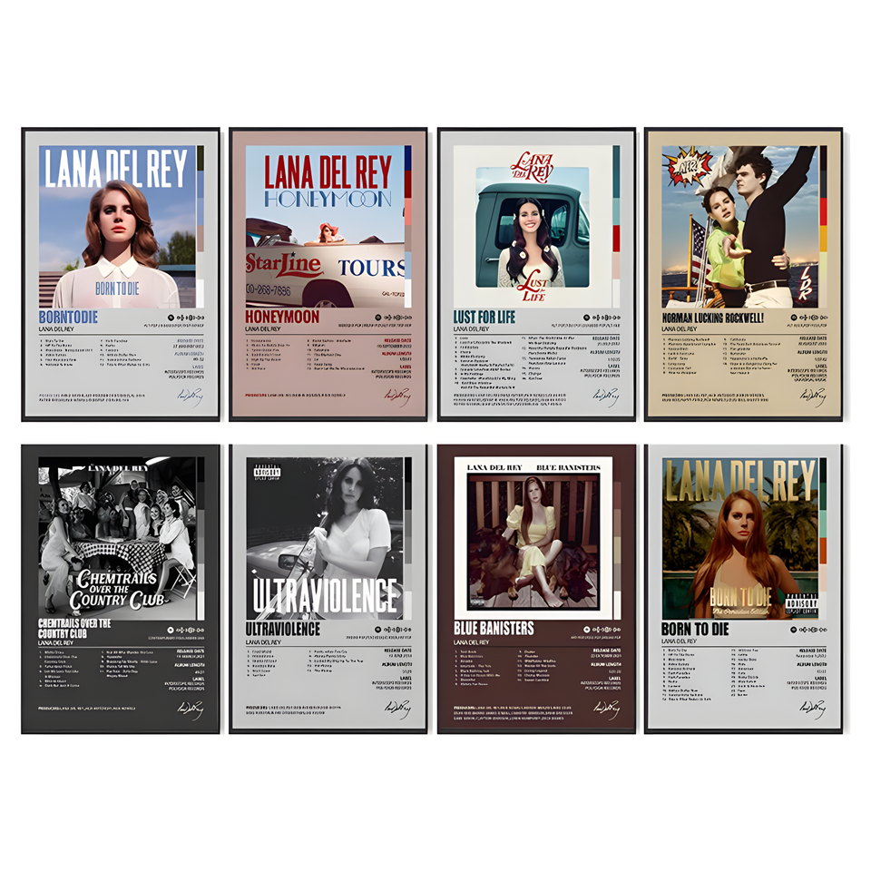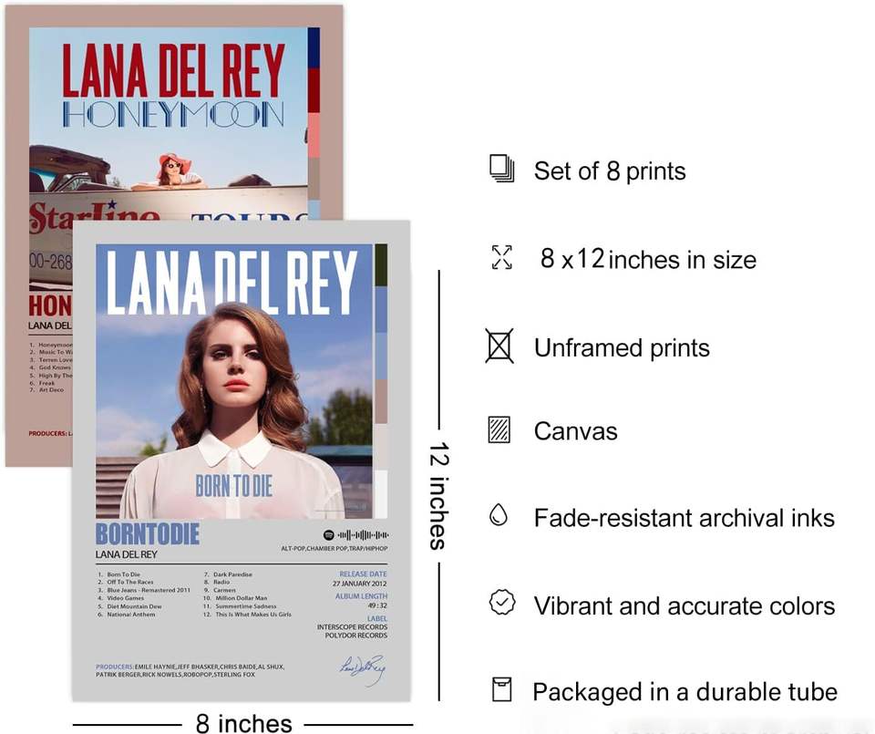 Lana Del Rey Posters Album Cover Music Poster for Room Aesthetic Canvas Wall Art for Teen and Girls Room Decor (Set of 8 8X12in)