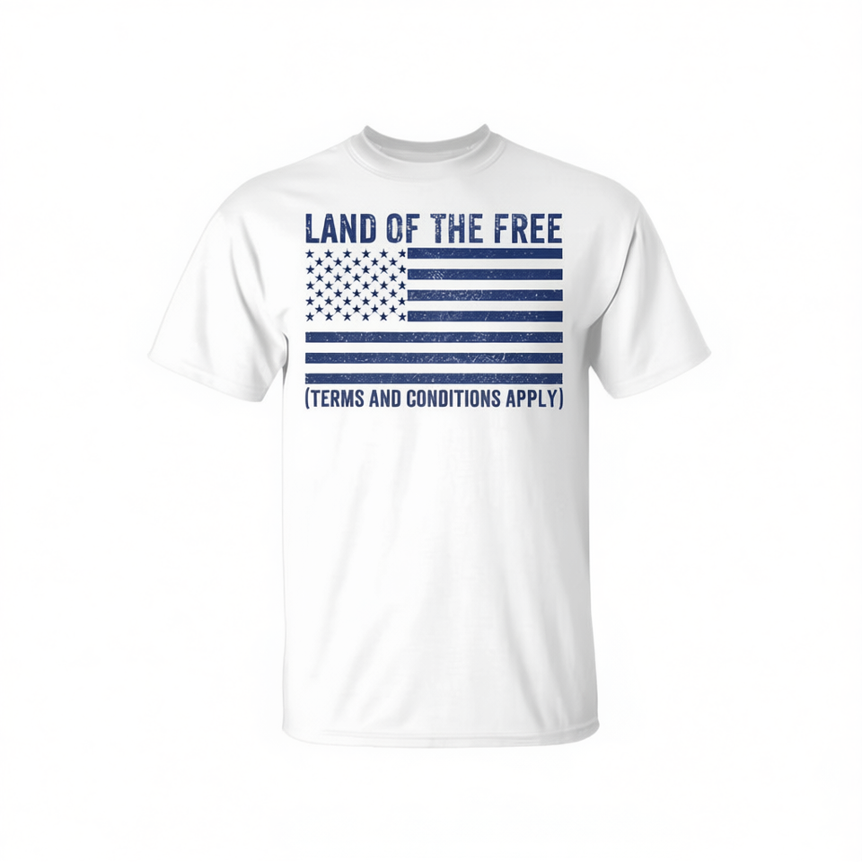 T-shirt con bandiera americana: la terra dei diritti e dei condizioni liberi