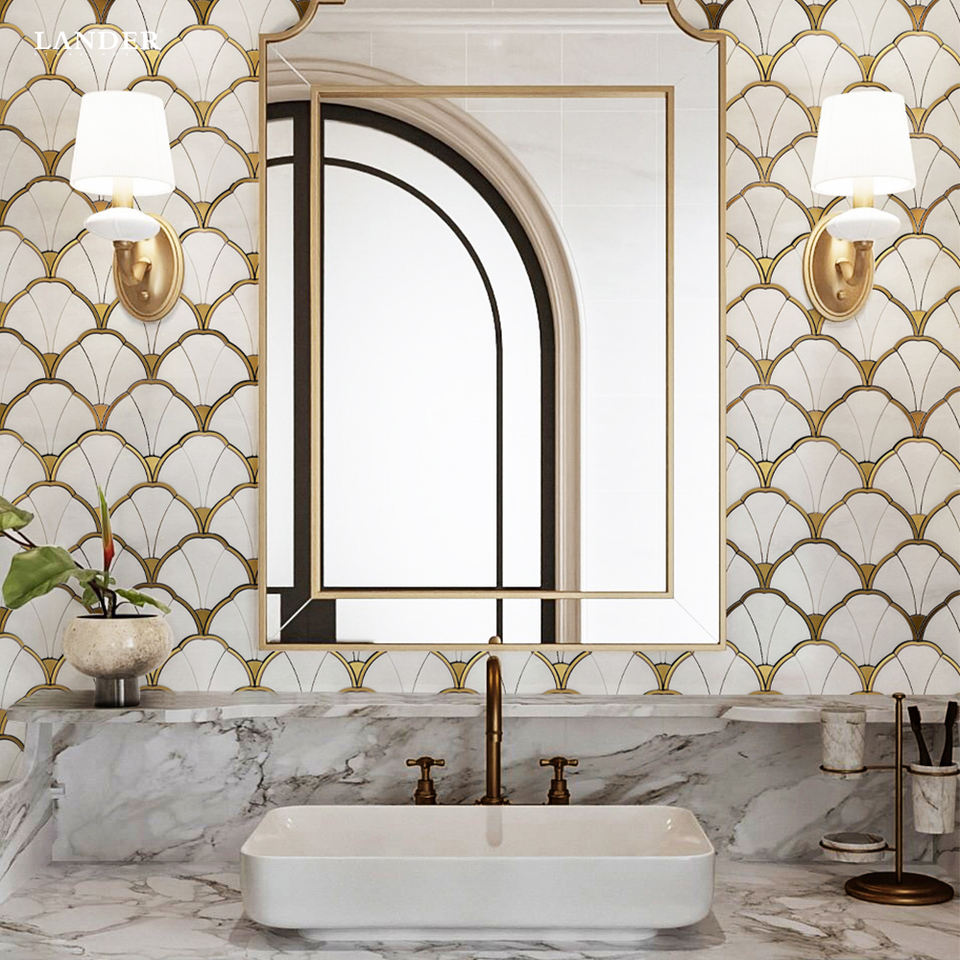 Pietra di Lander nuovo Design Waterjet marmo mosaico mattonelle per bagno soggiorno natura pietra a getto d'acqua mattonelle di mosaico in marmo