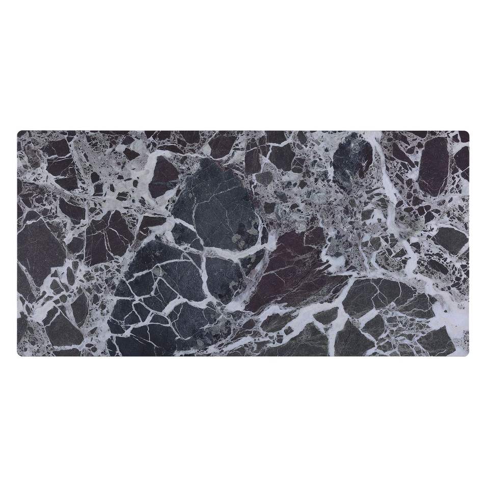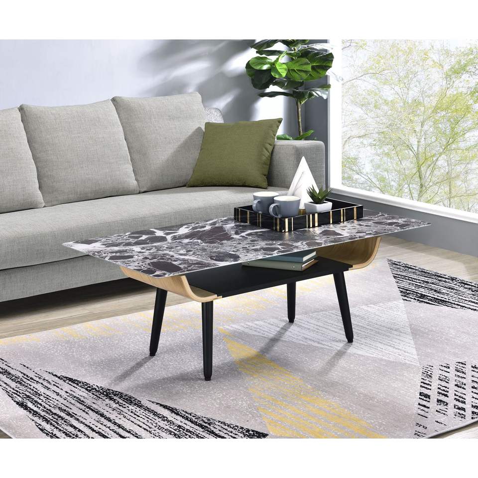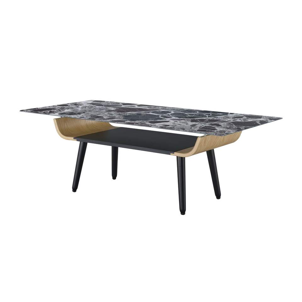 Tavolino da caffè Landon da 47 pollici con design in legno curvato e piano in vetro con texture effetto marmo nero