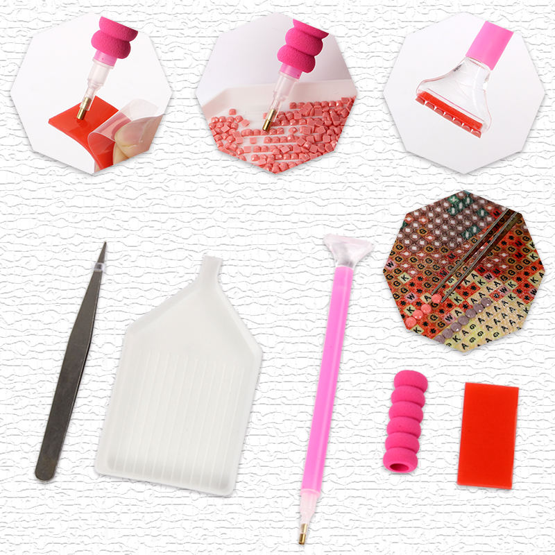 Penna punta, manicotto della penna, pinzette, vassoio di plastica, argilla