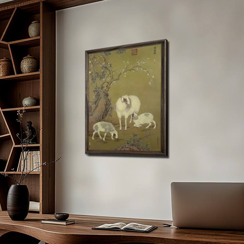 Lang Shining San Yang Kai Tai Tu Living Room Hanging Paintings Office Decoration Famous Paintings Housewarming Opening Gifts
