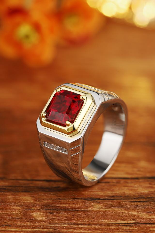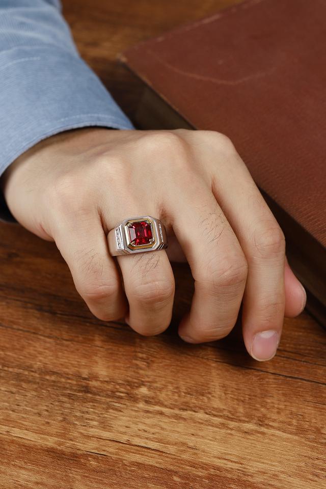Lanphear Solitaire S925 Sterling Silver Women Ring Asscher Cut Ruby Gem Men's Wedding Birthday Gifts Lab Grown Ruby Fashion Ring