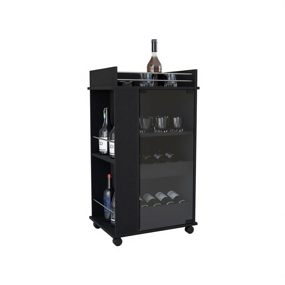 Depot E-SHOP Bar Cart Black Glass Door 2-Side Shelves Beverage Serving Modern Design