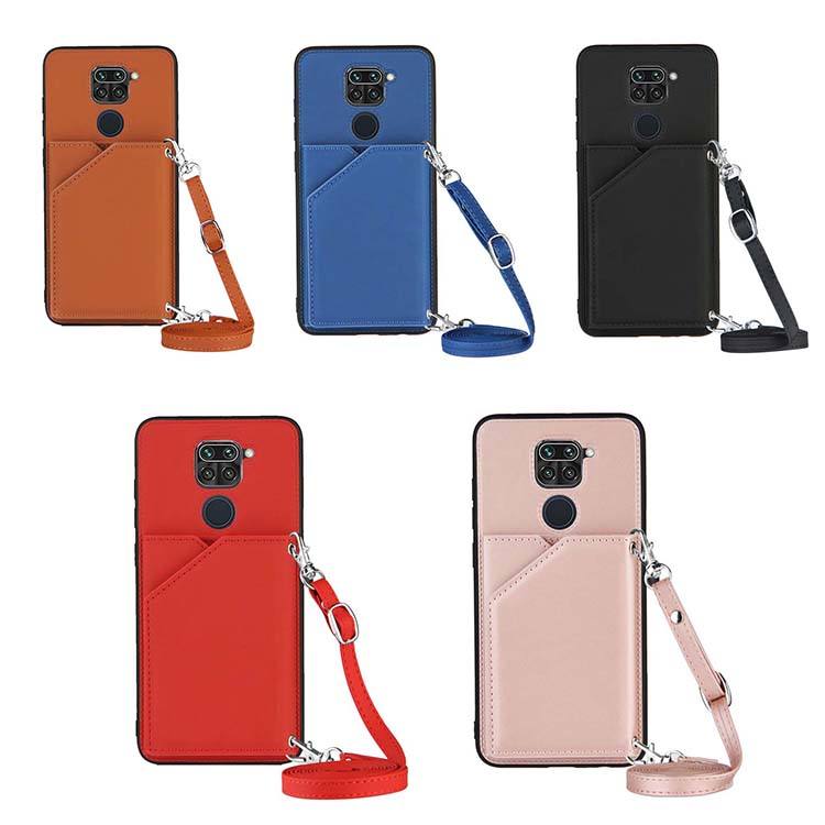 Custodia a Tracolla con Portacarte e Porta Telefono per Xiaomi Redmi 9C, Cover in Pelle PU con Supporto Pieghevole
