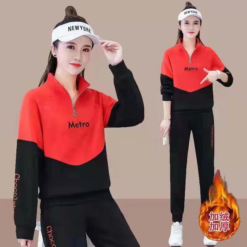 Lapel Sports Women's Suit 2023 Autumn/Winter Women's Loose Ankle Pants Fashion Color Patchwork Casual Two-piece Suit