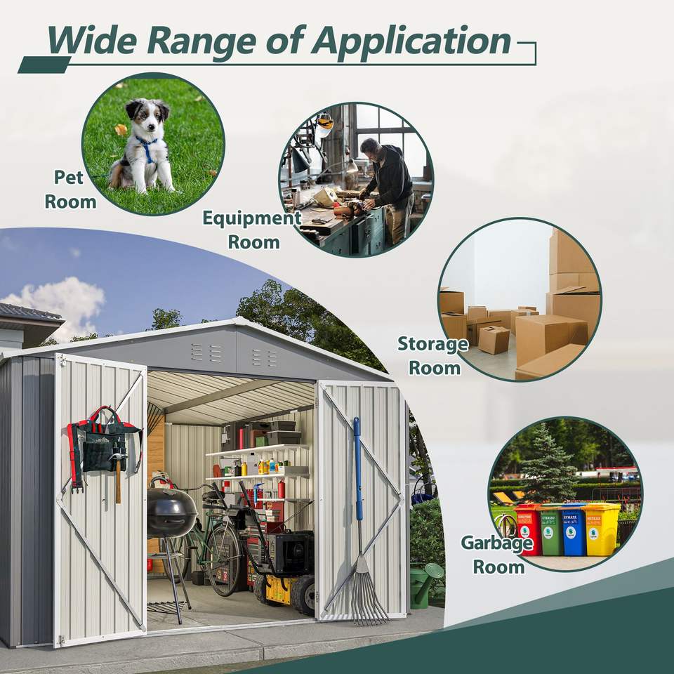 Large 10 X 10 FT Outdoor Grey Metal Tool Shed Updated Frame Structure with Lockable Doors for Garden Backyard Patio Lawn Storage